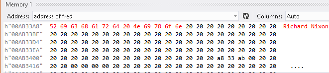This sets the pointer fred-pointer to the memory address of fred. The value of fred-pointer changes and you can see the new one in the DataTip and in the Watch window. The new value is the HEX address of fred.