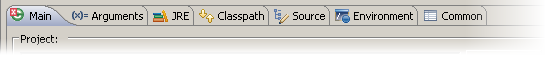 他のタブで必要な構成設定を定義します。例えば、[JRE] タブでランタイム JRE の選択、[Environment] タブで環境変数の指定、[Arguments] タブでプログラムと VM の両方の引数の宣言を、それぞれ行います。