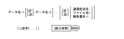 | 補助語: | 補助語(optional word)とは、それぞれの一般形式の中で、大文字で記してあるが下線を引いてない語である。補助語は書いても書かなくてもよい。補助語を書いたか書かなかったかによって、COBOL 原始要素の意味が変わることはない。 |