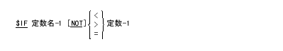 - 指令設定は、$SET文での指定と同じ形式で指定しなければならない。また、NOの後に続いて指定してもよい。ただし、$IF文で使用される形式は、$SETで使用される形式とは以下の点で異なる。