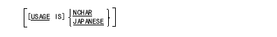 字類がNCHARのデータ項目を表わすには、USAGE NCHAR句またはUSAGE JAPANESE句を使用する。この句を指定したデータ項目のPICTURE文字列には、文字"N", "B", "/" , "0" だけを書くことができる。