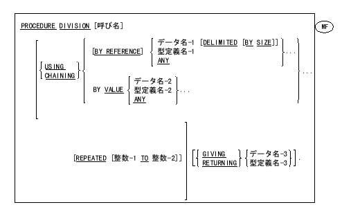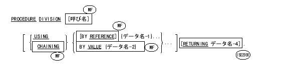 呼び名は、特殊名段落で定義しなければならない。この方法、および実行時環境でサポートされる呼び出し規則とのインターフェイスをCOBOLシステムで記述する方法の詳細については、環境部の章の特殊名段落特殊名段落節を参照。