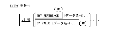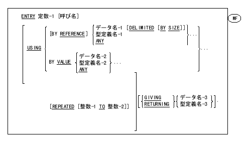 - 定数-1に入口名を指定したCALL文を使用して呼ぶプログラムから呼び出し先のプログラムを呼び出すと、ENTRY文の後ろの次の実行可能な文に制御が移される。