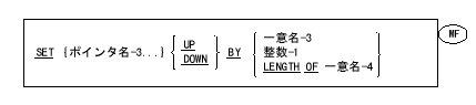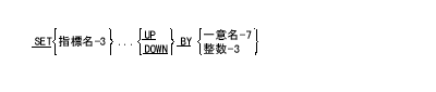 - 指標名-3の内容が、整数-3または一意名-7によって表わされる出現番号の値だけ、増分(UP BY)または減分(DOWN BY)される。指標名-3に複数の項目を指定すると、そのすべてについて上記の処理が繰り返される。その際、初回と同じように、一意名-7の値が使用される。