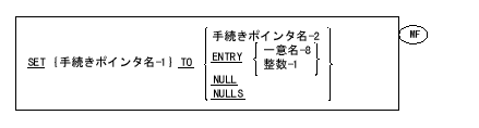 SET文を使用して、プログラムの番地または手続きポインター データ項目へのプログラムの入口点を割り当てることができる。