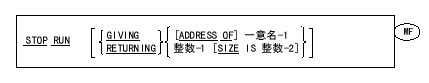 GIVING指定を書かないと、実行単位の動作は下記のようになる。具体的には、システム領域がCOBOLの数字データ項目であり、それにUSAGE COPM-5が指定されていて、そのサイズはCOBOLシステムの外の操作環境によって決められているものとして宣言されている状態で、RETURN-CODEを送出し側としシステム領域を受取り側として、MOVE文を実行したかのように動作する。(RETURN-CODE詳細については、COBOL言語の概念の章の特殊レジスタ節を参照。)