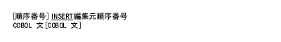 INSERT 文は、(BASIS メカニズムのもとで) COBOL システムに投入するプログラム中に挿入する、COBOL 原始プログラムの行をリストする。