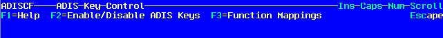 構成変更メニューから F8=Key Control を押すと、Adis キーコントロールメニューが表示されます。このメニューを、図 3-2 に示します。