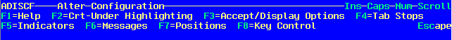 Adiscf メインメニューから F2=Alter を押して、変更メニューを選択すると、設定のすべて、または、一部を変更できます。図 3-4 には、設定変更メニューが示されています。