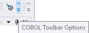 ツールバーを表示するには、[Tools > Customize] をクリックし、[Toolbars] タブで [COBOL] をオンにします。ツールバーが有効になっているにもかかわらず他のツールバーとともに表示されない場合、そのツールバーの場所を特定するには、下向き矢印にカーソルを置いてツールチップを表示します。