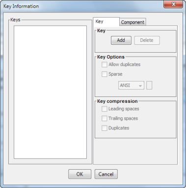 主キーがデフォルトのコンポーネントで作成されます。コンポーネントで、各レコード内のキーの開始位置と長さが定義されます。