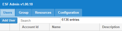 デフォルトでは、[User] タブには [Action]、[Order]、[Account Id]、[Name]、および [Description] 列が表示されます。このタブでは検索可能であり、ユーザーをフィルターして、その文字列が [Account Id] または [Name] 列に含まれるユーザーのみを表示できます。