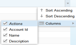 すべてのタブに [Action] 列があります。選択した行にある項目に対して実行可能なアクションの一覧を表示するには、