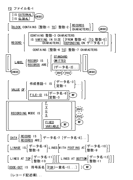 - ファイル記述項の後には1個以上のレコード記述項が続くものとする。