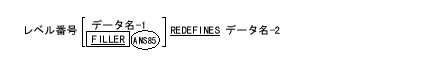ただし、データ名-1の領域がデータ名-2の領域よりも大きくてもよい場合を除く。この場合、再定義する項目と再定義される項目の大きい方を収められるだけの記憶領域がとられる。