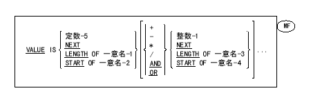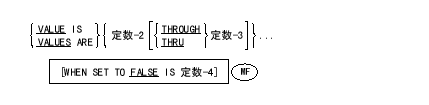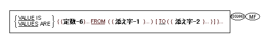 VALUE 句は、定数の値、作業場書項目および局所記憶項目の初期値、条件名に関連する値を定義する。