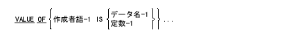 VALUE OF 句はファイルのラベル レコード中の項目の内容を指定する。