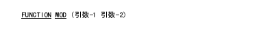 MOD 関数は、引数-1を引数-2で割ったときのモジュロー(法、割り切れる値との差)を整数値で返す。 この関数の型は整数である。
