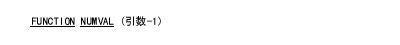 NUMVAL 関数は、引数-1に指定された文字列によって表わされる数値を返す。前後の空白は無視される。この関数は数字型である。