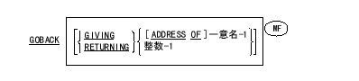- 呼び出したランタイム要素の制御下にあるプログラム内でGOBACK文を実行した場合、GOBACK文と同じ句が指定されているEXIT PROGRAM文を実行したかのように、オブジェクト プログラムは動作する。EXIT(出口)文節を参照。