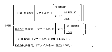 OPEN 文は、ファイルの処理を行うための準備(ファイルのオープン)をする。また、見出しの確認や書き込み、その他の入出力操作を行う。
