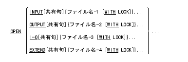 1. WITH LOCKを指定すると、OPEN文は該当するファイル全体に対してロックする。(これは、そのファイルのSELECT文の中にLOCK MODE IS EXCLUSIVEを指定することに等しい。環境部の章のファイル管理記述項ファイル管理記述項節を参照)。