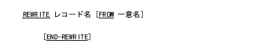 を実行し、それからFROM指定をしないREWRITE文を実行することと同じである。暗黙のMOVE文が実行される前のレコード領域の内容は、REWRITE文の実行に影響を及ぼさない。