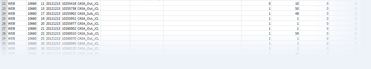 HSF レコードの収集およびディスクへの書き込みを有効にしている場合は、スプレッドシートにインポートできるカンマ区切りファイルでトランザクションの個別実行の詳細を確認できます。これらのファイルには、1 行ごとに 1 つの HSF レコードが含まれています。ファイル名は cashsf-a.csv および cashsf-b.csv です。